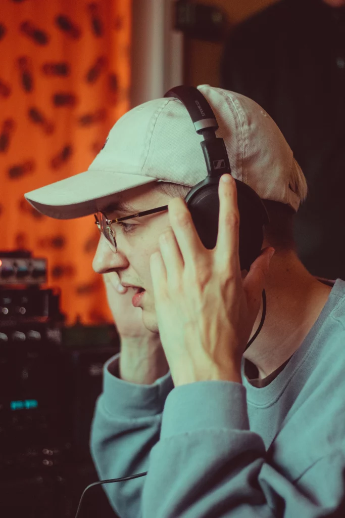 Today’s focus is vocals. I can’t help but feel redundant as the cogs of this well-oiled machine start to turn; Theo is setting up a make-shift vocal booth in the wardrobe, Harry is checking all equipment is working, George is loading the necessary instrumentals – Joe in a trance as he goes over the verse he is about to record, all written this morning.